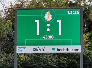 Egal ob Werbebande, Fascia Board, Videowürfel oder Videowand, unsere Systeme beeindrucken jeden Zuschauer. Aktuellste Treiberkomponenten stellen Bildwiederholraten jenseits von 1kHz und somit ein kamerataugliches Bild in jeder Situation sicher. Unsere robusten Module werden Sie durch ihre Zuverlässigkeit und Bildqualität überzeugen ! ( Sport Series )