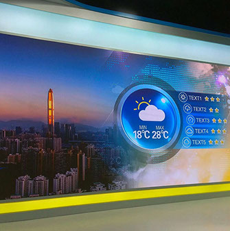 Als Teil der Studiokulisse sind LED Displays die ideale Technik., egal ob es sich um ein standard Display im klassischen 16:9 Format oder um kreatives Studiodesign mit ungewöhnlichen Formaten und Formen handelt. Durch ausgereifte Farbregelung und Anti-Moiré Technik sind unsere Systeme für diese Aufgabe bestens geeignet. Dynamischer Content für eine dynamische Studiogestaltung - insbesondere unsere UHD Serie ist hier die ideale Wahl.